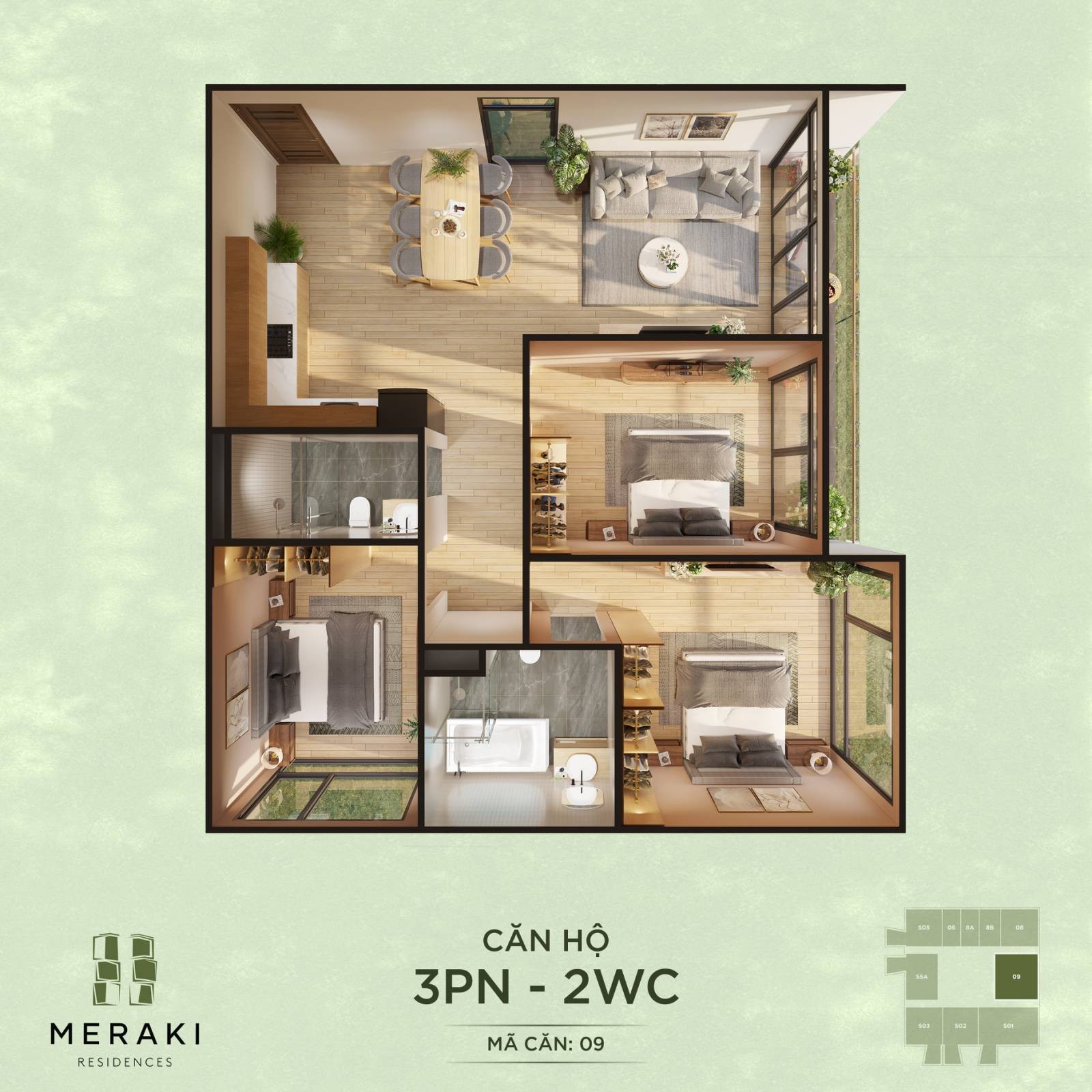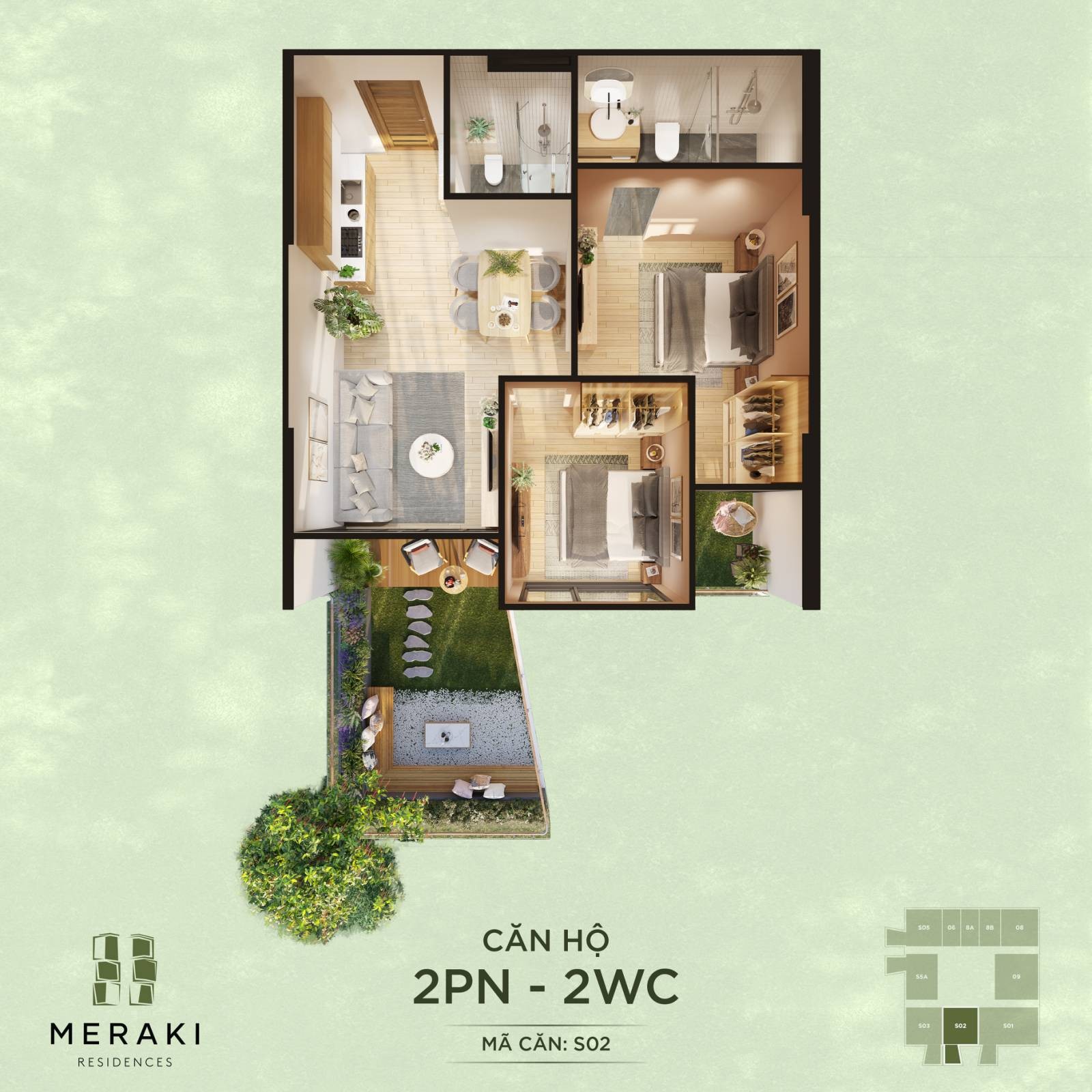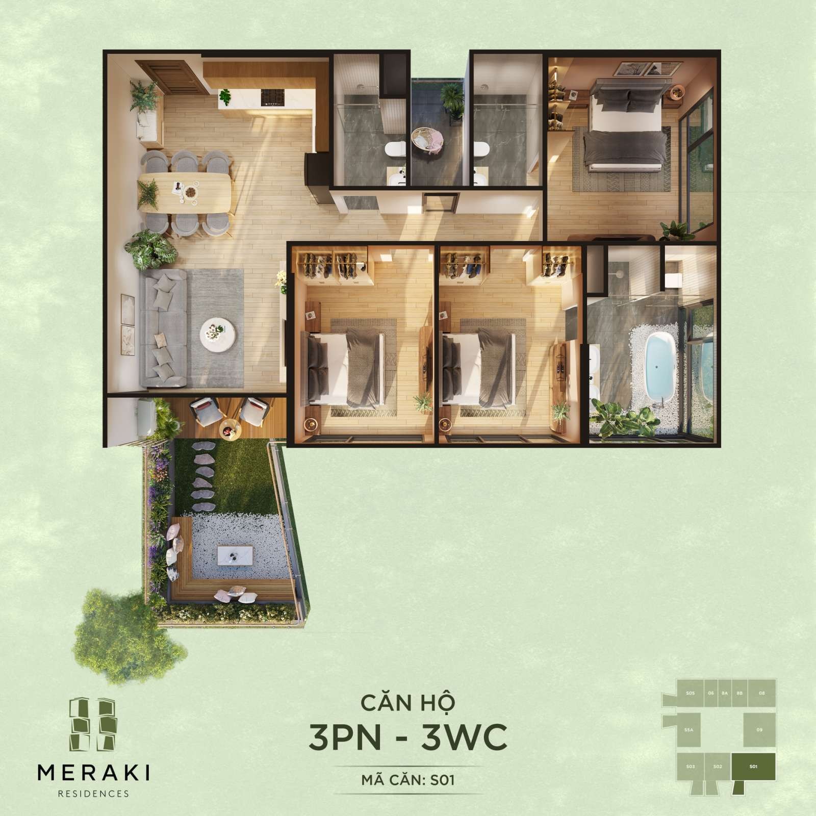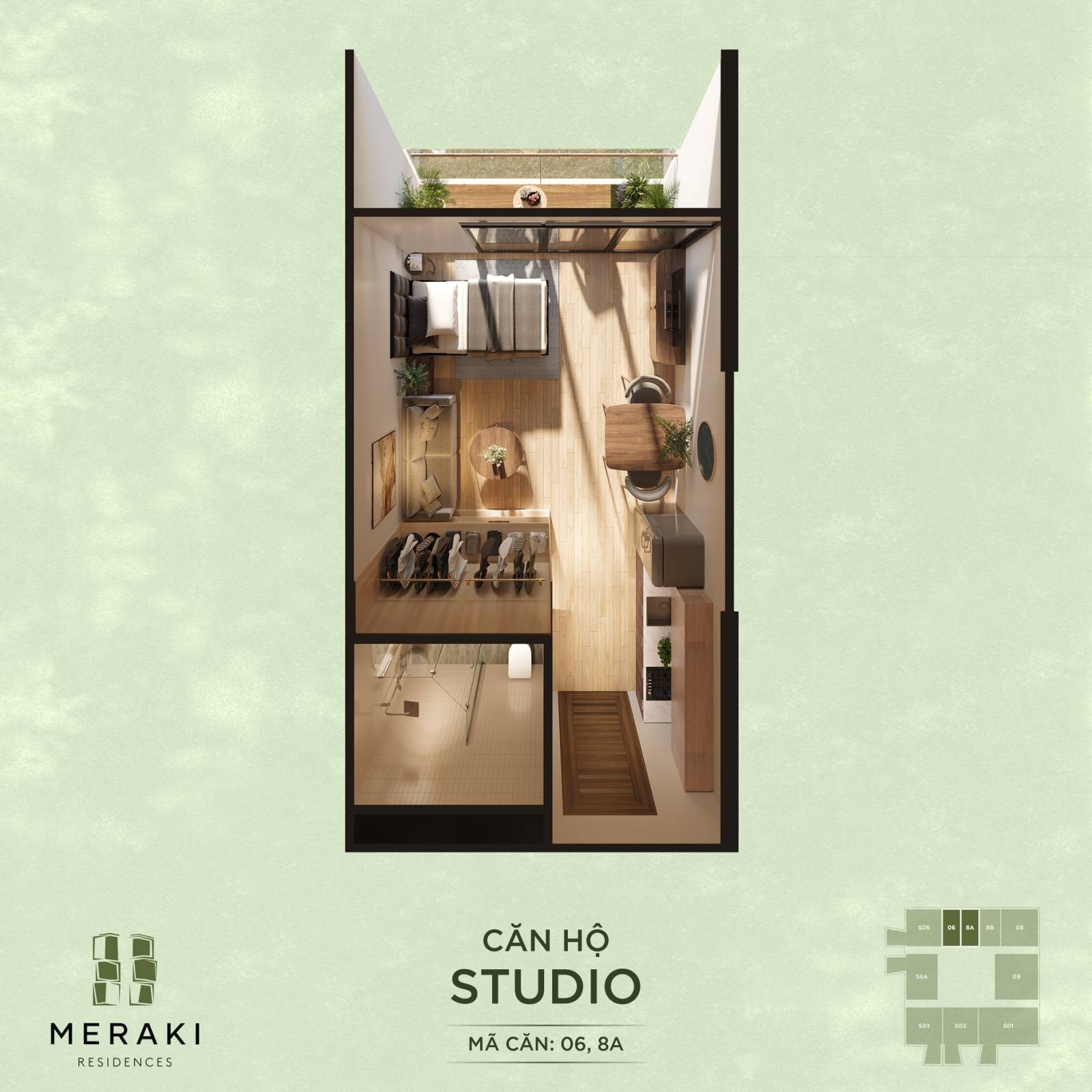 Layout bóc mái Meraki Residences