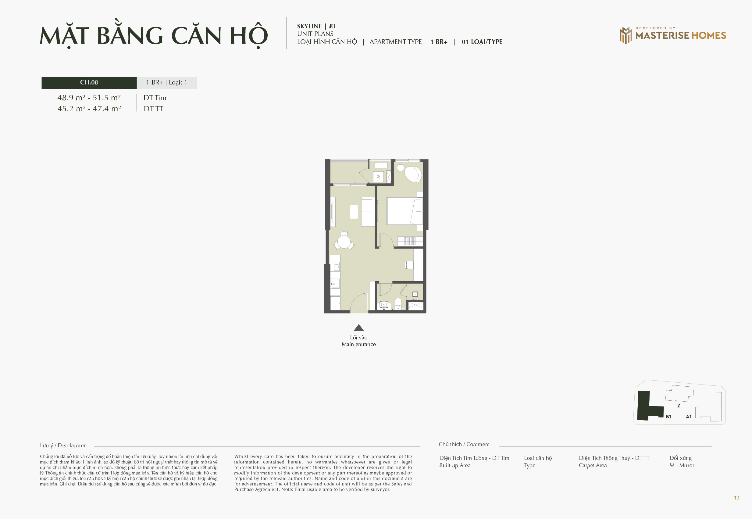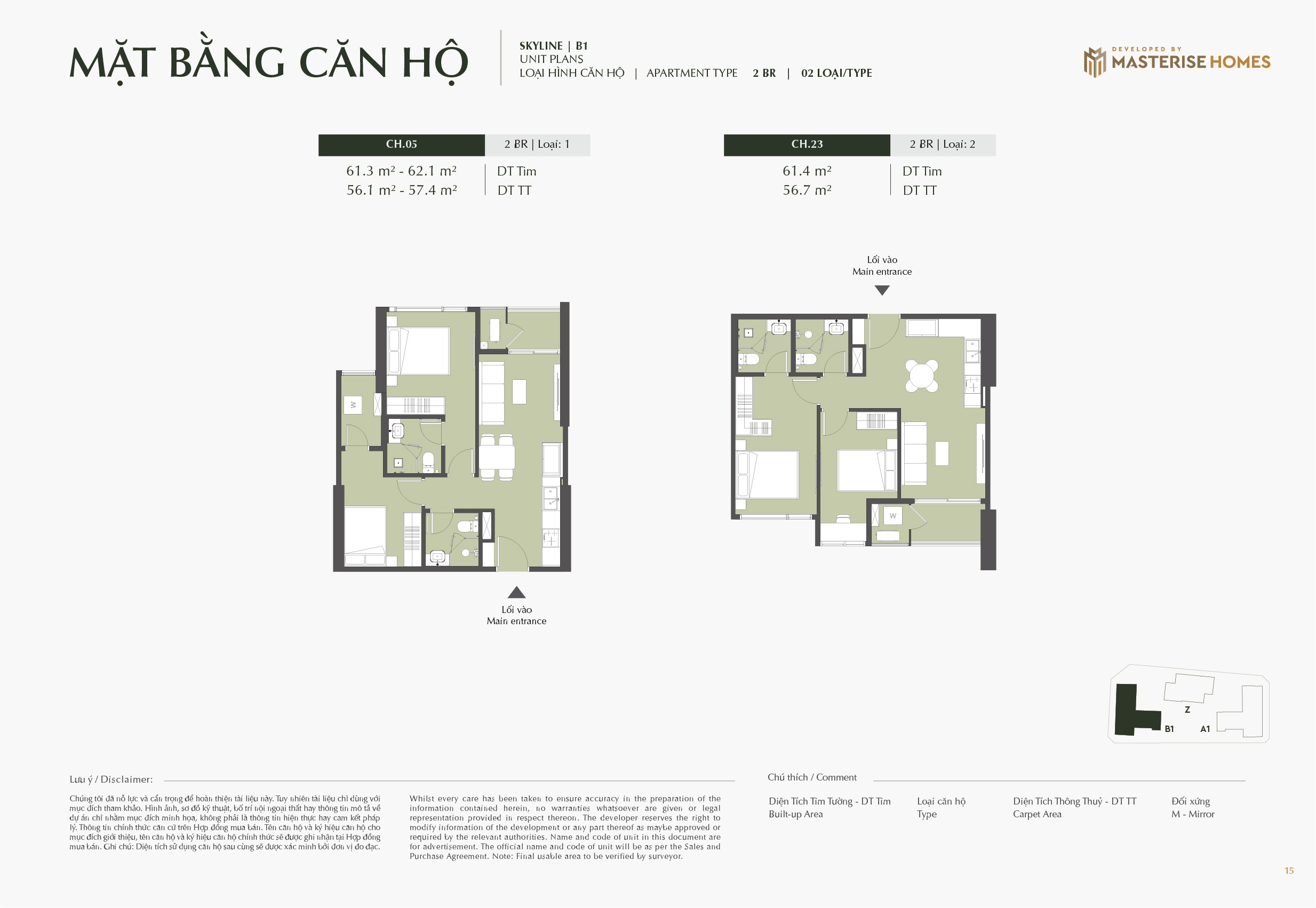 Mặt bằng căn hộ toà Skyline dự án LUMIÈRE Prime Hills