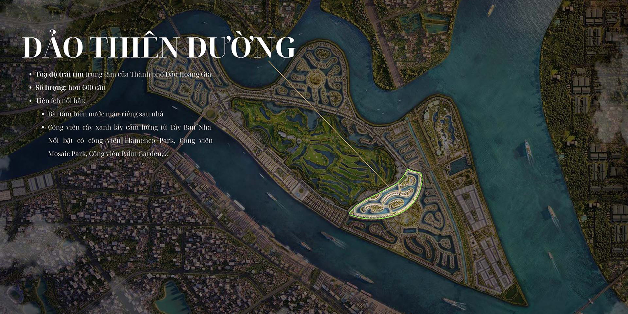 Tiên phong mô hình “biệt thự đảo”, Hoàng Gia có 70% biệt thự ôm công viên Europa Park, phía sau là bãi tắm biển mặn; 30% biệt thự ven sông hướng sông xanh thoáng đãng. 100% biệt thự dát vàng 18k, vườn thượng uyển trước nhà, khẳng định vị thế thượng lưu.