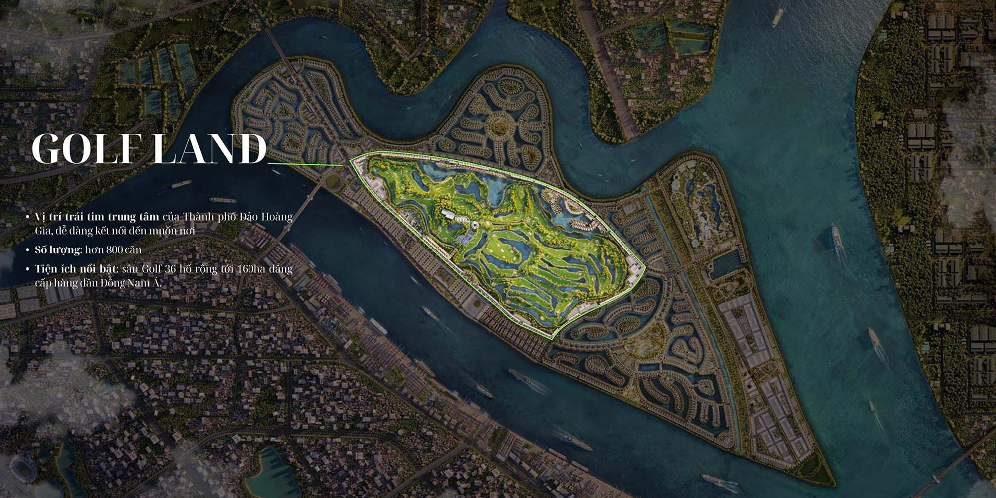 Ngập tràn sắc xanh từ đảo golf, hồ và biển, Golf Land là biểu tượng sống đẳng cấp, kết hợp hoàn hảo giữa kinh doanh và nghỉ dưỡng.