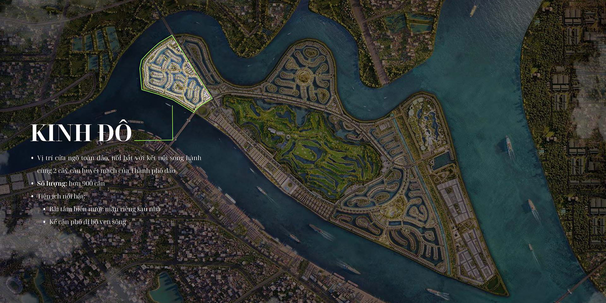 Bao quanh là công viên nhiệt đới ven sông và các công viên nội khu đa dạng, Kinh Đô là lựa chọn lý tưởng cho giới thượng lưu yêu thích lối sống trải nghiệm, vượt trội hơn phân khu Đảo Vua.