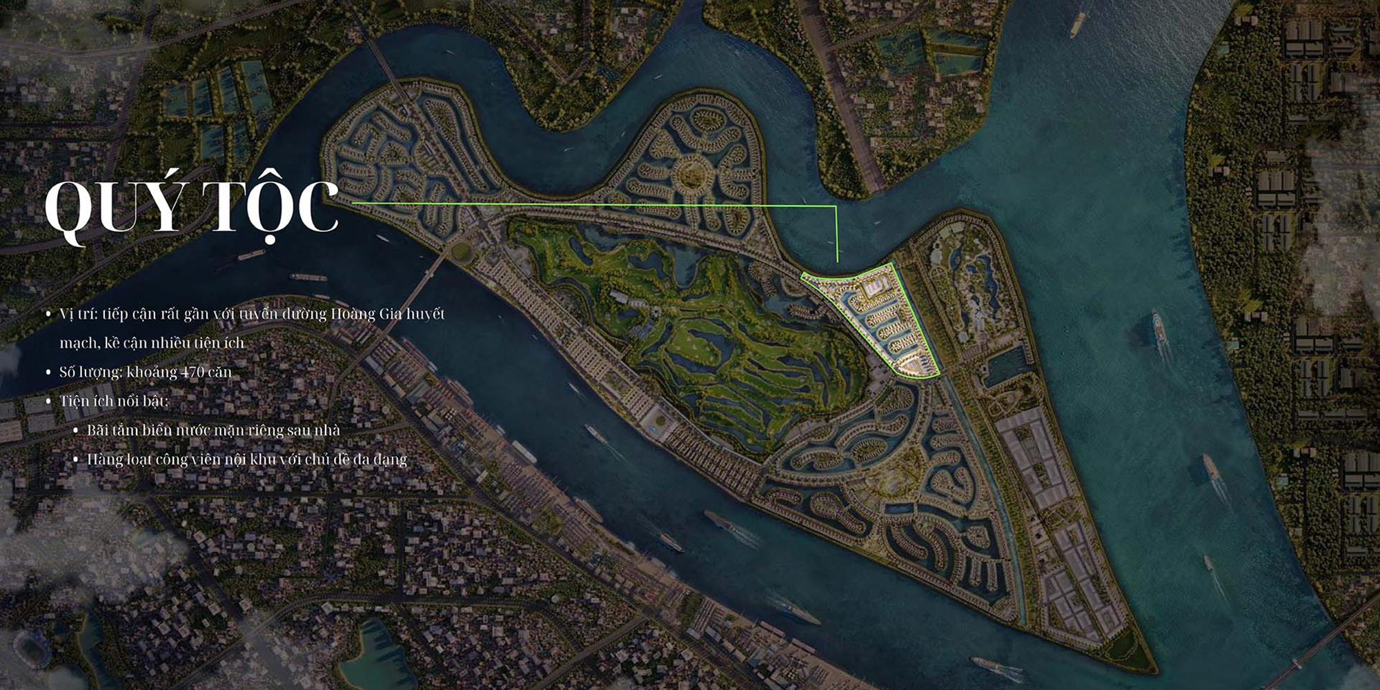 Tọa lạc gần ngã ba sông Bạch Đằng, Quý Tộc tiếp giáp sông sinh thái và trục đường Tương Lai – tuyến giao thông huyết mạch, đảm bảo kết nối nội ngoại khu thuận tiện.